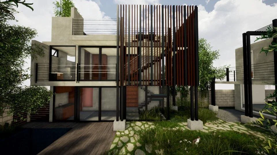 A new ADU in the heart of Venice, the ADU sits on the site of a previous pool house structure. Its compact footprint belies an efficient programming over two stories with balcony and a roof terrace.